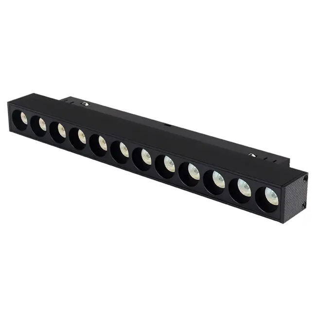 Dieser CCT LED-Schienenstrahler mit 12 Spots besteht aus hochwertigem schwarzem Aluminium. Er eignet sich hervorragend zur Akzentuierung bestimmter Objekte oder Bereiche in einem Raum.