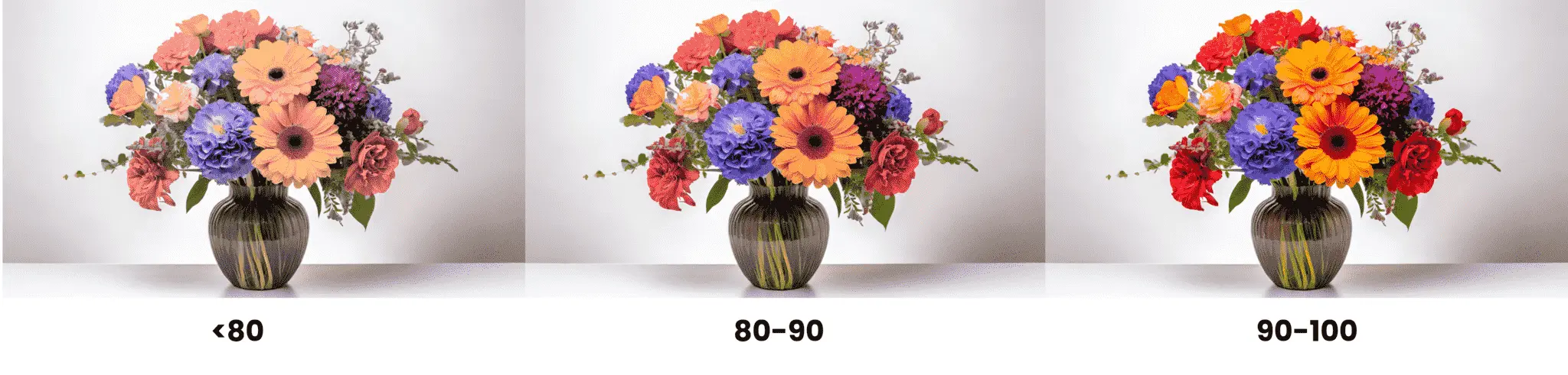 Eine LED-Lampe mit einem CRI-Wert zwischen 80 und 90 hat eine ziemlich gute Farbwiedergabe. Die meisten LED-Lampen verfügen über diesen CRI-Wert. Lichtquellen mit diesem CRI-Wert haben eine hohe Farbwiedergabe oder einen hohen CRI, sind aber nicht perfekt. Die meisten Lampen mit diesen CRI-Werten werden in Räumen wie Wohnungen, Lagerhallen, Bürofluren oder öffentlichen Bereichen verwendet.
