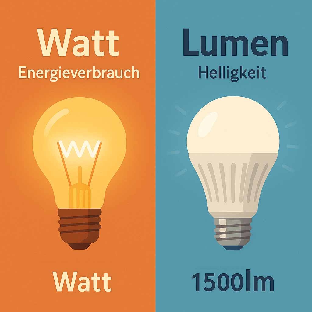 Watt (W) sagt dir, wie viel Energie eine Lampe verbraucht – aber nicht, wie hell sie ist. Lumen (lm) hingegen misst den tatsächlichen Lichtstrom, also die sichtbare Helligkeit. Früher war das leicht: 60 Watt bedeuteten eine helle Glühbirne. Heute schaffen LEDs dieselbe Helligkeit mit nur 8 bis 10 Watt. Deswegen ist die Wattangabe beim Kauf von modernen Leuchtmitteln kaum noch aussagekräftig.