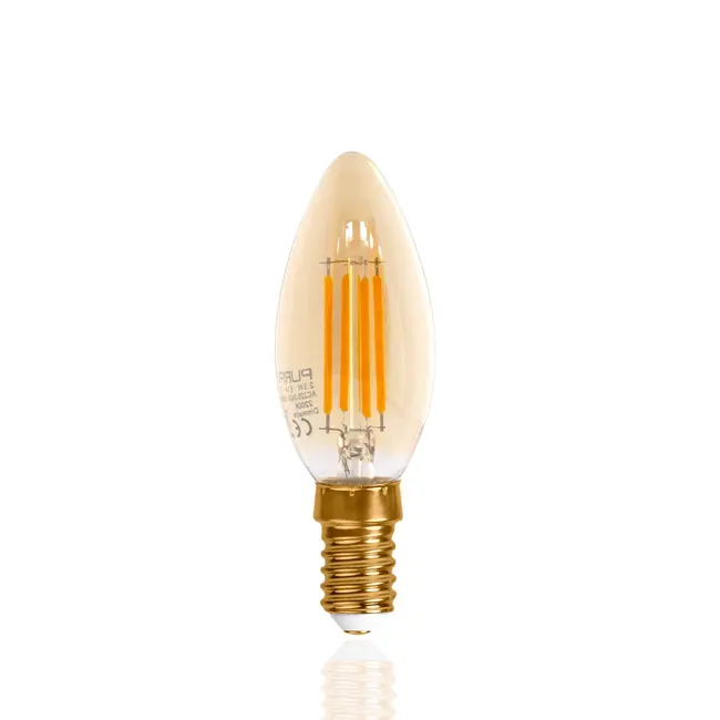 Die PURPL LED-Glühbirne E14 in Kerzenform ist die ideale Wahl für stilvolle und energieeffiziente Beleuchtung. Mit ihrem Retro-C35-Design und der extra warmweißen Lichtfarbe schafft sie eine gemütliche Atmosphäre. Perfekt geeignet für Kronleuchter, Wandleuchten oder Tischlampen, sorgt sie für ein elegantes, wohnliches Ambiente.