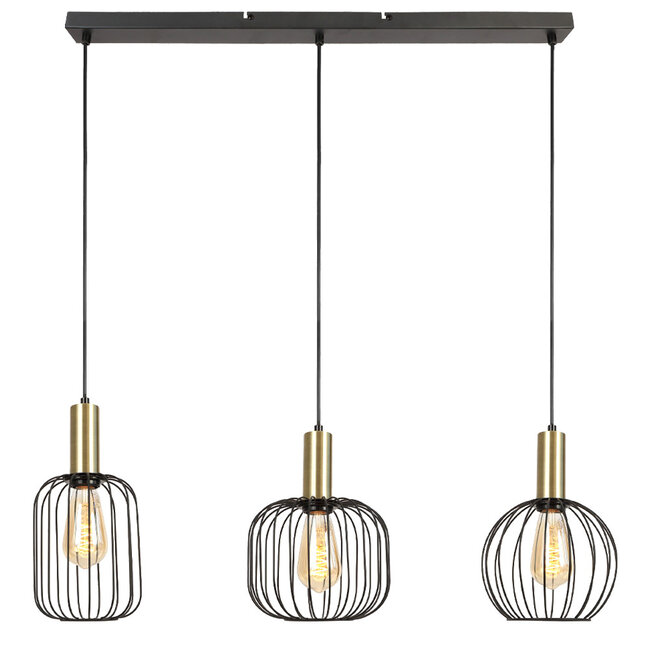 Diese Pendelleuchte verleiht deiner Küche oder deinem Wohnzimmer stilvollen Charme. Sie besteht aus drei einzelnen Pendelleuchten, deren offener Schirm aus eleganten schwarzen Metallstreben gefertigt ist. Die goldfarbenen Akzente sorgen für einen edlen Look und machen sie perfekt als Blickfang über deiner Kücheninsel oder deinem Esstisch. Hol dir modernes Design und warmes Ambiente nach Hause! Dank der stufenlosen Höheneinstellung bis zu 120 cm je Pendel kannst du die Leuchte individuell anpassen – perfekt für jede Raumhöhe.