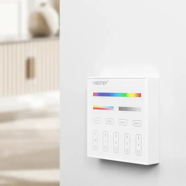 Diese Wandsteuerung ist einfach zu installieren und funktioniert mit allen Mi-Light RGB+CCT Beleuchtungen.